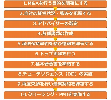 M&Aを行う際は、主に下記の流れで進めていきます。