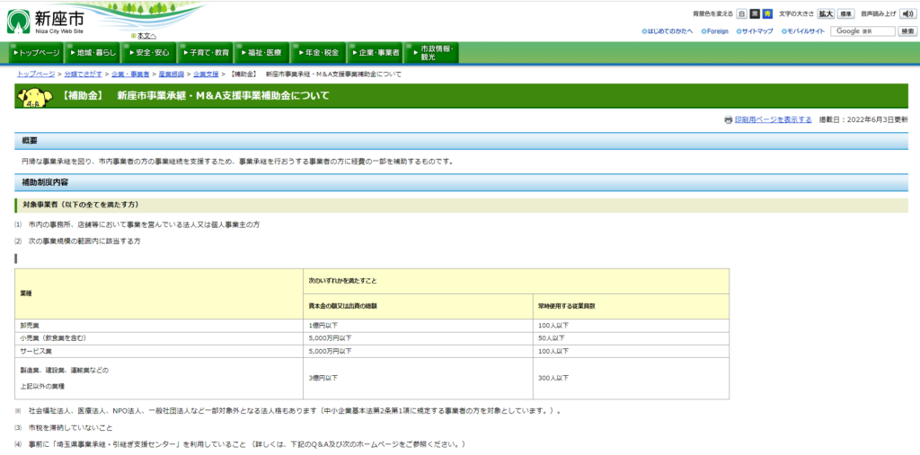 新座市事業承継・M&A支援事業補助金とは、新座市が市内にある企業の事業継続をサポートするために設けた補助金です。