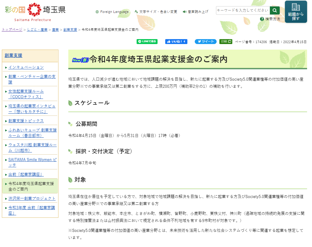 埼玉県起業支援金とは、公益財団法人埼玉県産業振興公社が実施している、地域の企業を支援するための事業です。