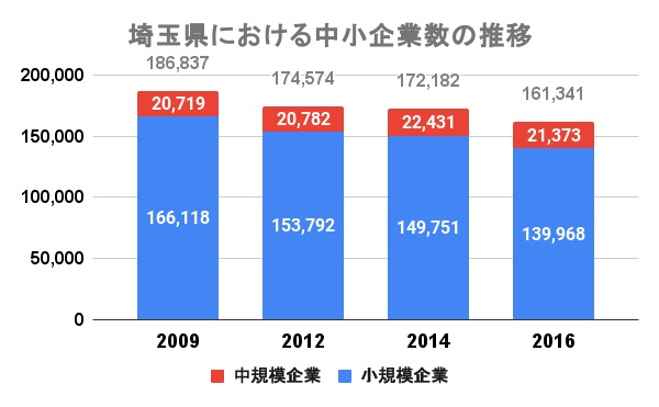 企業数は国内で5番目に多い埼玉県ですが、中小企業の数は年々減少傾向にあります。